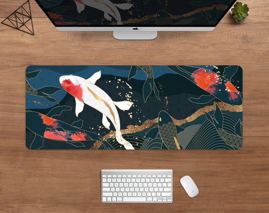 Koi Fish Desk Mat Japanese Mousepad XXL Green Oriental Pond Asia Lotus Flowers And Leaves Large Gaming Deskmat Anime Mouse Pad