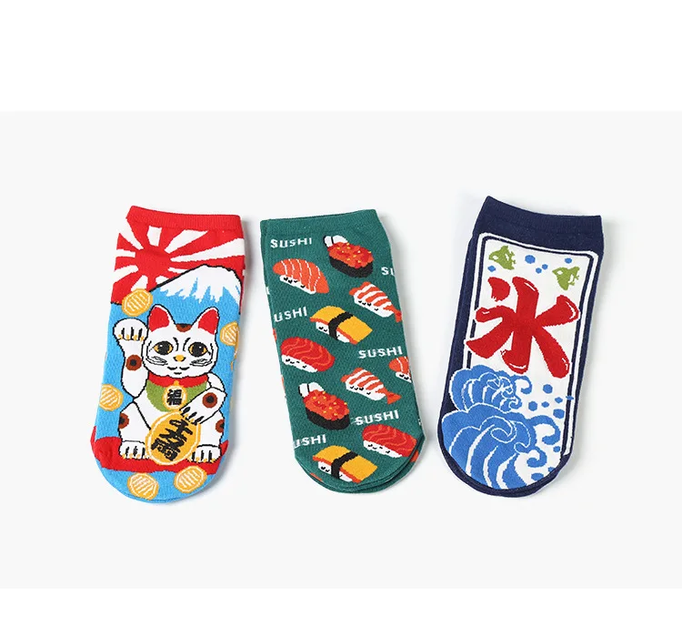 New Women Cotton Socks Cartoon Lucky Cat Cute Kittens Short Socks Japanese Fashion Creative Funny Socks Slippers