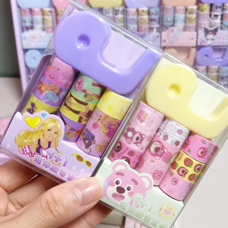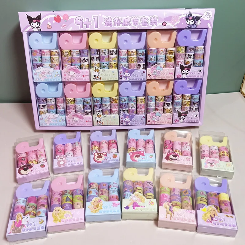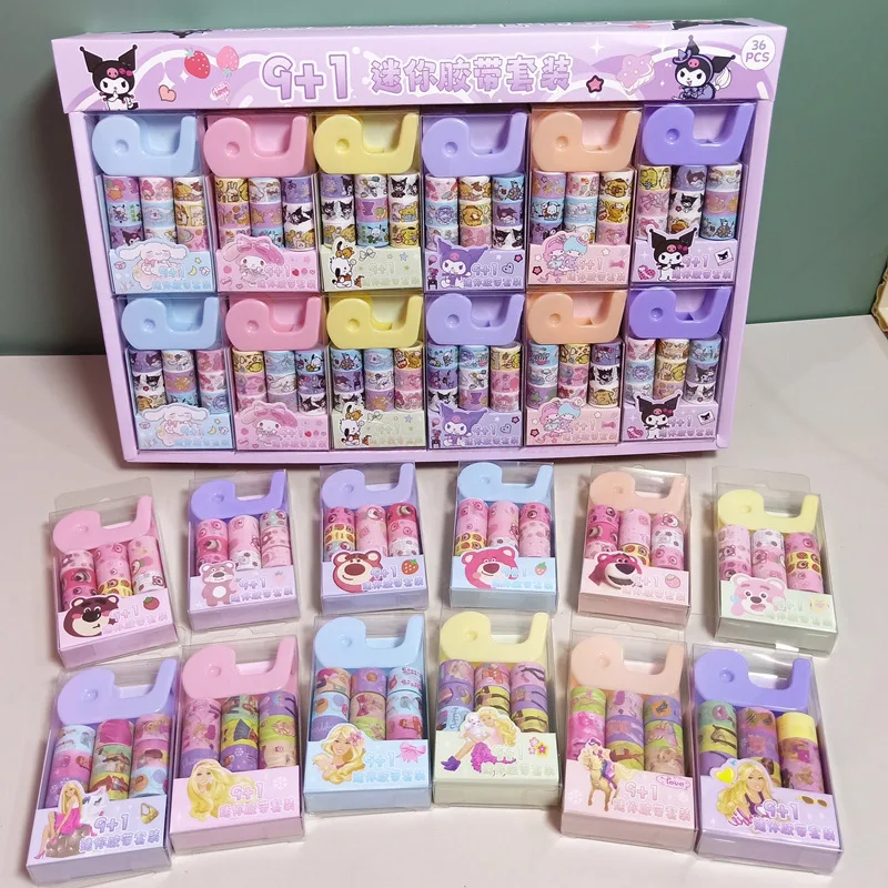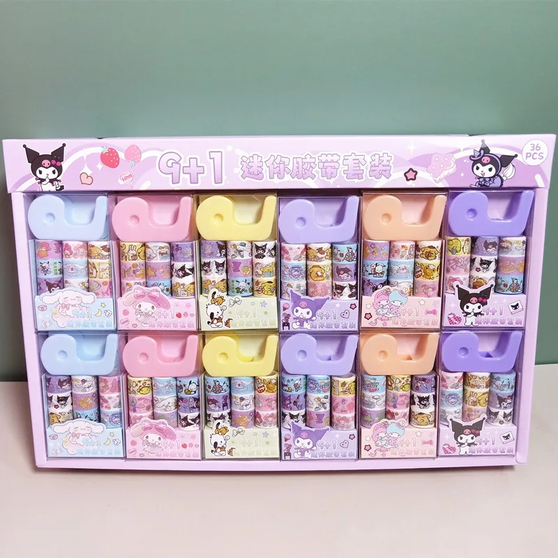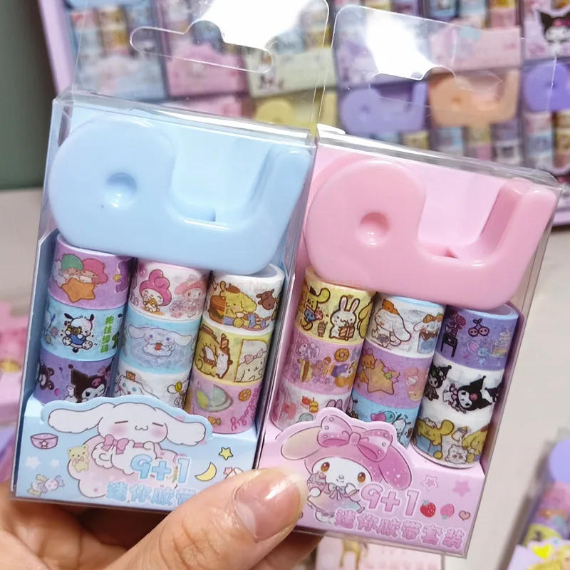 Sanrio Cartoon Kuromi Cinnamoroll Pattern Creative 9+1 Washi Tape Set Sticker Mini Diy Handmade Accessories Gift Children's Toys